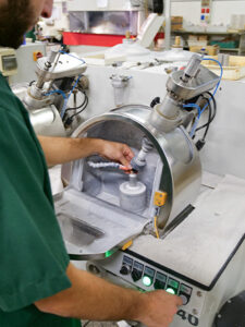 - Grinding, la fase in cui la lente viene modellata per ottenere la geometria richiesta.